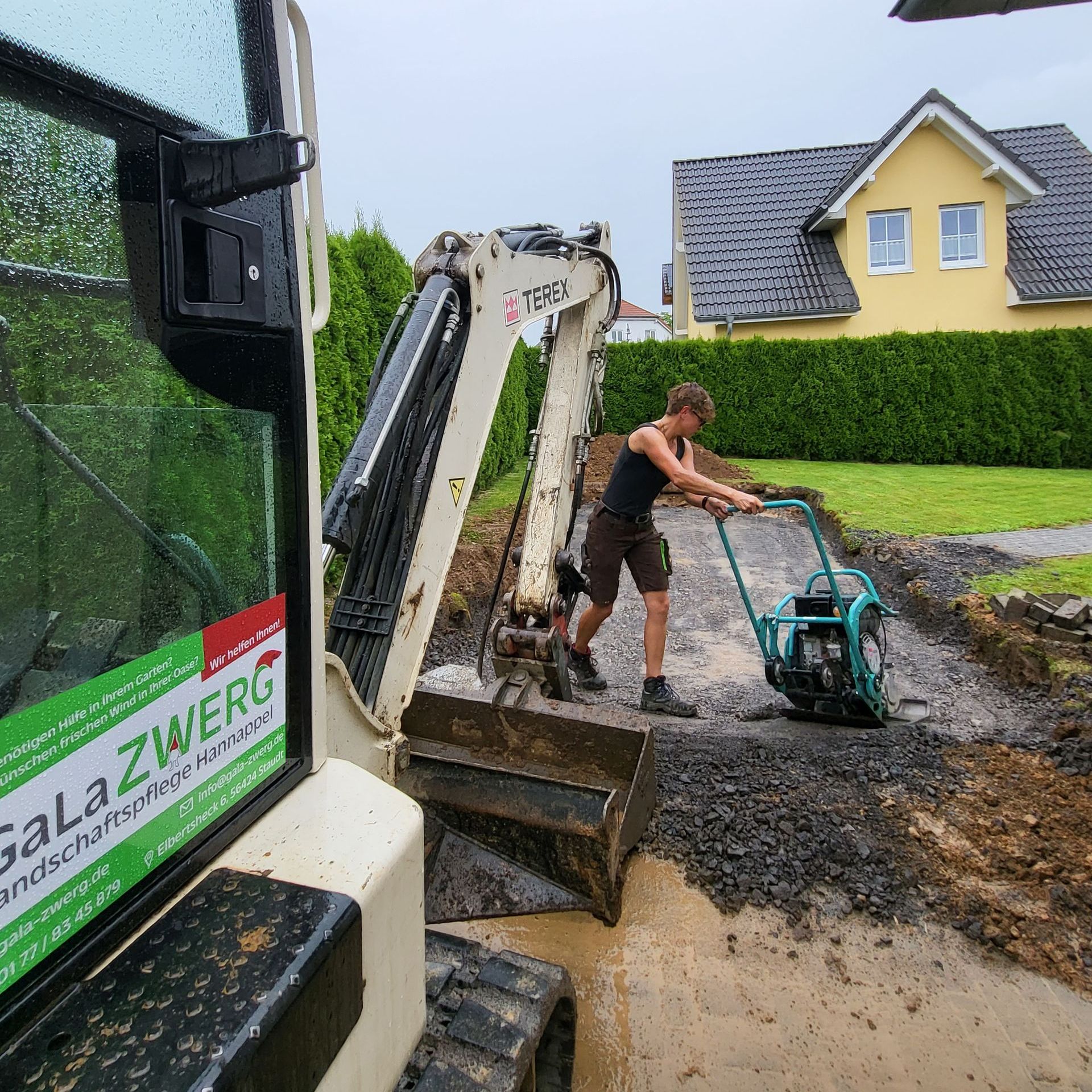 Des weiteren übernehmen wir professionell Pflasterarbeiten, Setzen von Mauerwinkeln, Ausschachtungen, Verlegung von Kabeln und Anschlüssen sowie Entwässerungsarbeiten.